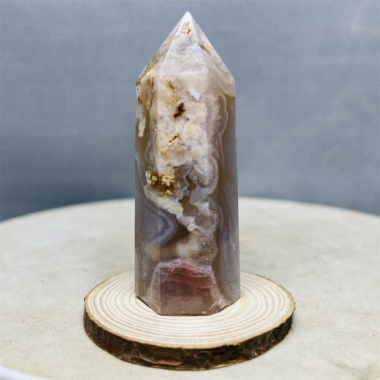 Natural Pink Purple Cherry Blossom Agate Pagoda Obelisks